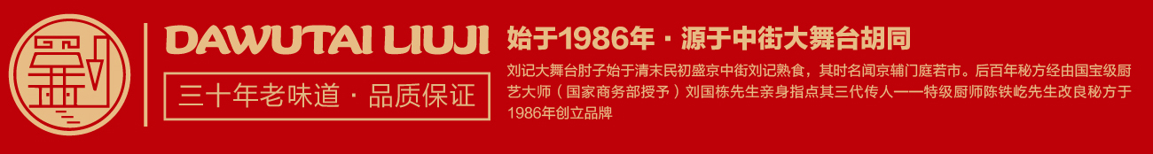 盛京,昔乃大清王朝發(fā)祥之地。劉記大舞臺(tái)肘子始于清末民初盛京中街劉記熟食,其時(shí)名聞京輔門庭若市。后百年秘方經(jīng)由國寶級(jí)廚藝大師(國家商務(wù)部授予)劉國棟先生親身指點(diǎn)其三代傳人——中國烹飪大師劉家驥之徒中國烹飪大師陳鐵屹先生改良秘方,于1986年創(chuàng)立品牌。劉記大舞臺(tái)經(jīng)營的產(chǎn)品涵蓋招牌熏肘,豬蹄,燒雞等系列,產(chǎn)品色澤潤嫩、酥美可口、吮指尤香、譽(yù)滿沈城,遂成古今絕味,其獨(dú)特的風(fēng)味深受沈城百姓喜愛。經(jīng)過三十余年的沉淀發(fā)展,劉記大舞臺(tái)品牌也成為了沈陽地標(biāo)美食文化名片之一。